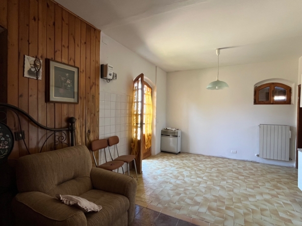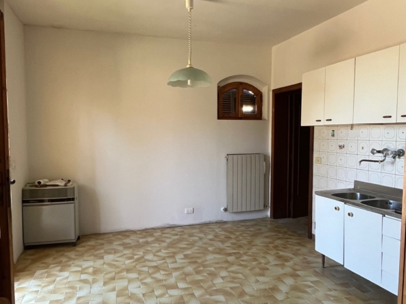 L’immobile misura complessivi mq 140 e si sviluppa su 2 livelli: al piano terra soggiorno/cucina, sgombero, disimpegno oltre annesso ad uso rimessa e resede esclusivo; al piano primo 2 camere, studio, disimpegno e bagno.